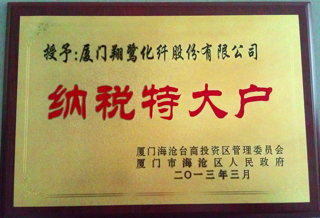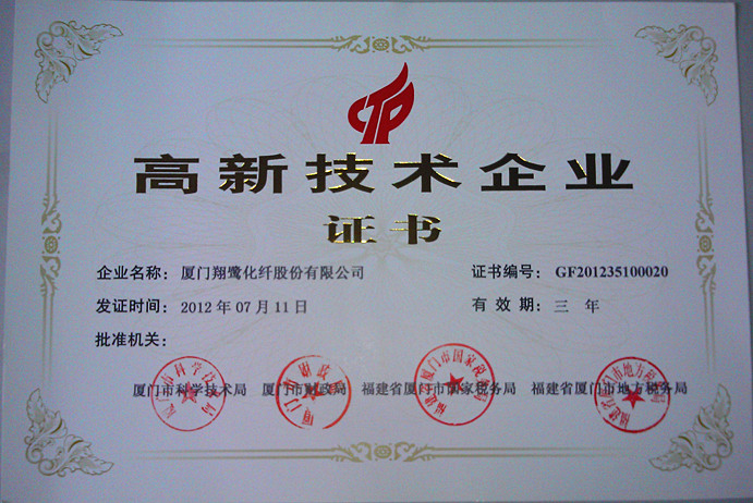祝賀翔鷺化纖榮獲“高新技術(shù)企業(yè)”“納稅特大戶”稱號(hào)根據(jù)《高新技術(shù)企業(yè)認(rèn)定管理辦法》和《高新技術(shù)企業(yè)認(rèn)定管理工作指引》有關(guān)規(guī)定及全國(guó)高新技術(shù)企業(yè)認(rèn)定管理工作領(lǐng)導(dǎo)小組辦公室《關(guān)于廈門市2012年第二批高新技術(shù)企業(yè)復(fù)審備案申請(qǐng)的復(fù)函》現(xiàn)確認(rèn)廈門翔鷺化纖股份有限公司為高新技術(shù)企業(yè),頒發(fā)“高新技術(shù)企業(yè)證書”授予“高新技術(shù)企業(yè)”稱號(hào)。 為表彰各企業(yè)對(duì)提升海滄區(qū)經(jīng)濟(jì)綜合競(jìng)爭(zhēng)力,增加財(cái)政收入,促進(jìn)社會(huì)全面進(jìn)步作出的重要貢獻(xiàn),海滄區(qū)召開2012年度納稅大戶暨創(chuàng)建商標(biāo)品牌表彰大會(huì),授予我司“納稅特大戶”稱號(hào),并獎(jiǎng)勵(lì)10萬(wàn)元。