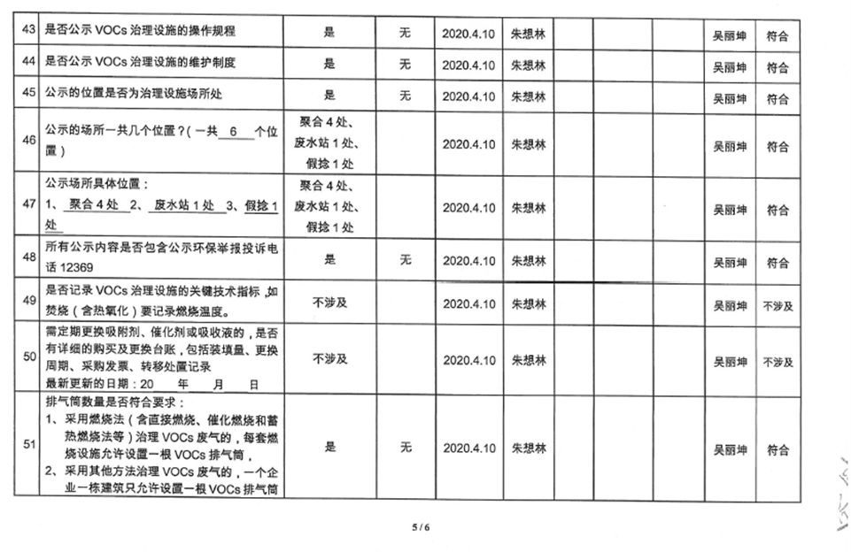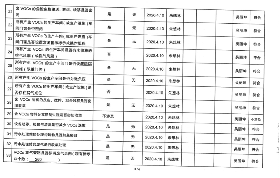 廈門市揮發(fā)性有機(jī)物污染防治企業(yè)自查表(2020年第一季度)